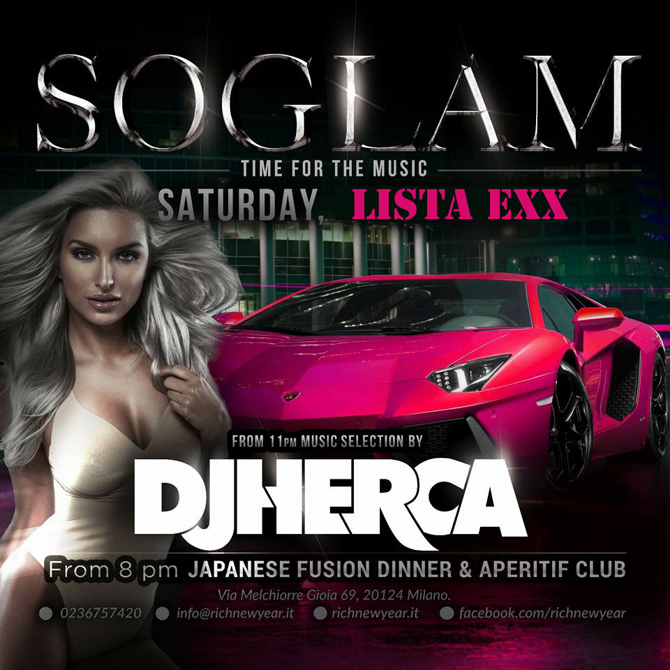SoGlam, unica serata a Milano in Stile Internazionale e Fashion, inizio con aperitivo Royal Buffet o cena Japanese Fusion, si prosegue Tutti in pista per scatenarsi fino al mattino in compagnia di Vip e Modelle che non mancano mai nelle serate Glam del Richmond. In pista spettacolari animazioni Show by "Hashtag Dance Agency".